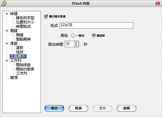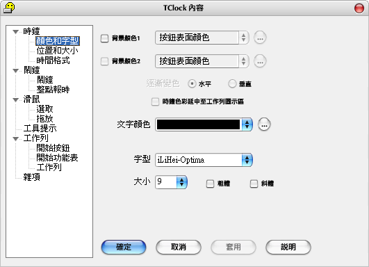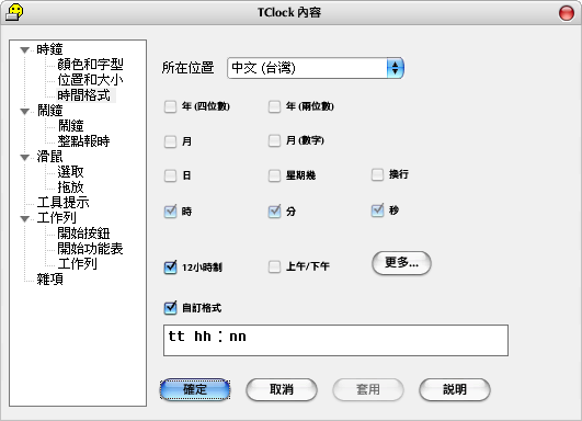 其實與其說是改時間格式,倒不如說 TClock 是個工具列的美化程式,功能還滿多元的。