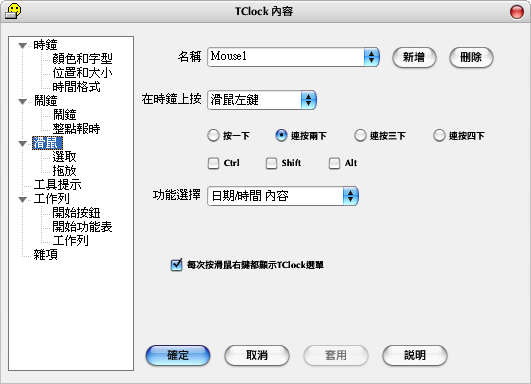 TClock 是套綠色軟體,所以也是免安裝直接可以使用,並內建繁中。執行之後你就會發現系統時間格式變了,對著它按右鍵,選 "TClock 內容" 就可以開始進行調整。