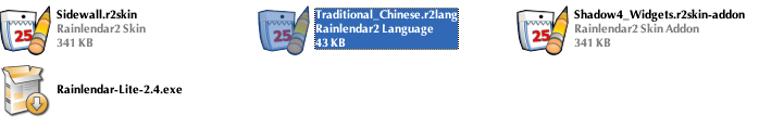 剛安裝好的 Rainlandar 是英文的,可以點這裡下載中文化檔案,中文化方法也舊版的不大一樣,只需要對著中文化檔連點兩下就可以了,簡單許多。